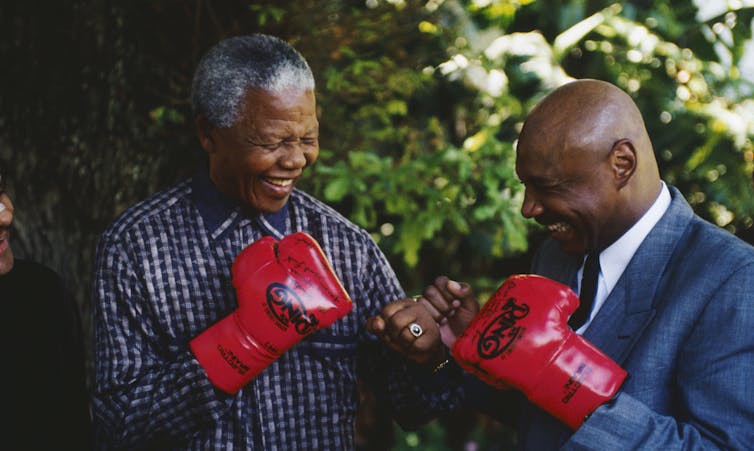 Mandela a commencé la boxe quand il était étudiant à l’université de Fort Hare. Il s’est mis à s’entraîner plus sérieusement pendant ses années d’études, de travail et de lutte à Johannesburg dans les années 1940 et 1950, bien qu’il ne soit pas allé jusqu’à combattre en compétition. Des décennies plus tard, il se montrait modeste sur son niveau : « Je n’ai jamais été un boxeur exceptionnel », a-t-il écrit dans son autobiographie Long Walk to Freedom.